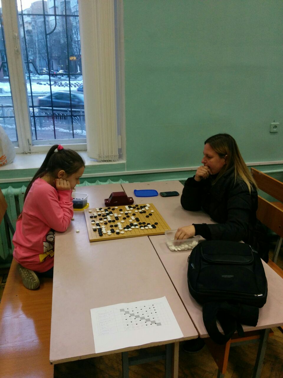 Дівчата грають, як за регламентом: по 2 години кожній + 1 хв. на хід та ще й нігірі до купи.