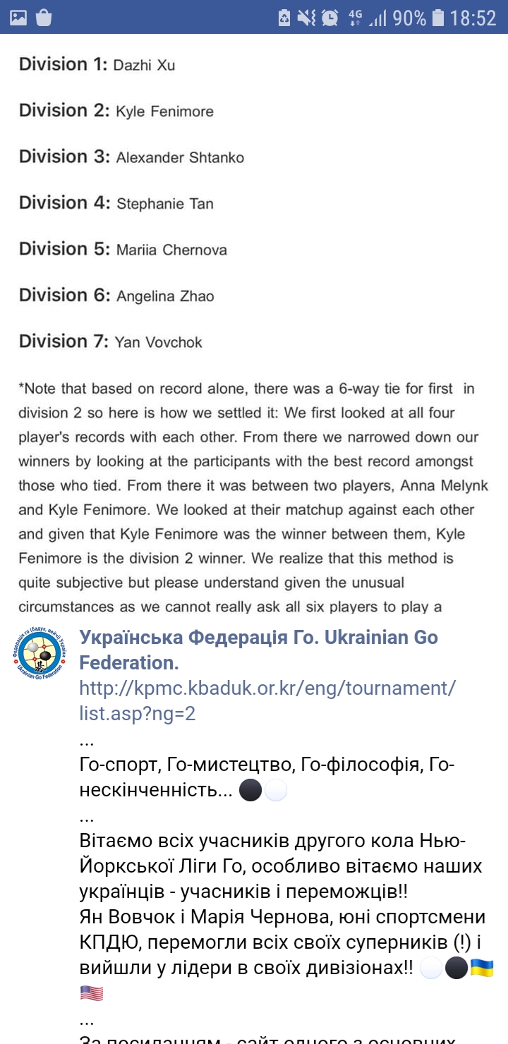 Сьогодні надійшов лист із привітаннями переможцям по дивізіонах, всього їх цього разу було чотири. У 5 Нью-Йоркській Лізі Переможцем у Четвертому Дивізіоні став Тимофій Овсієнко 💗🧚‍♀️⚫⚪🇺🇦