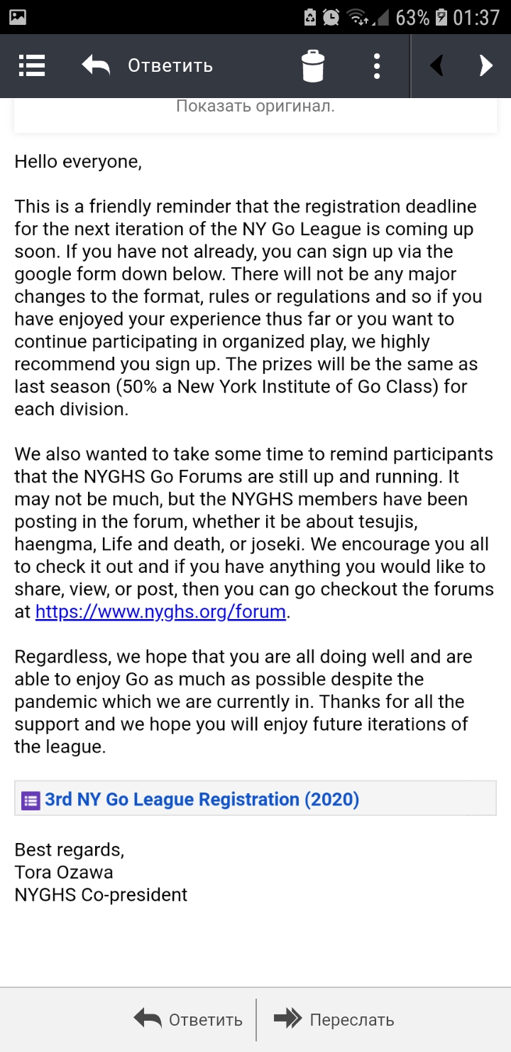 Re: New York Go League