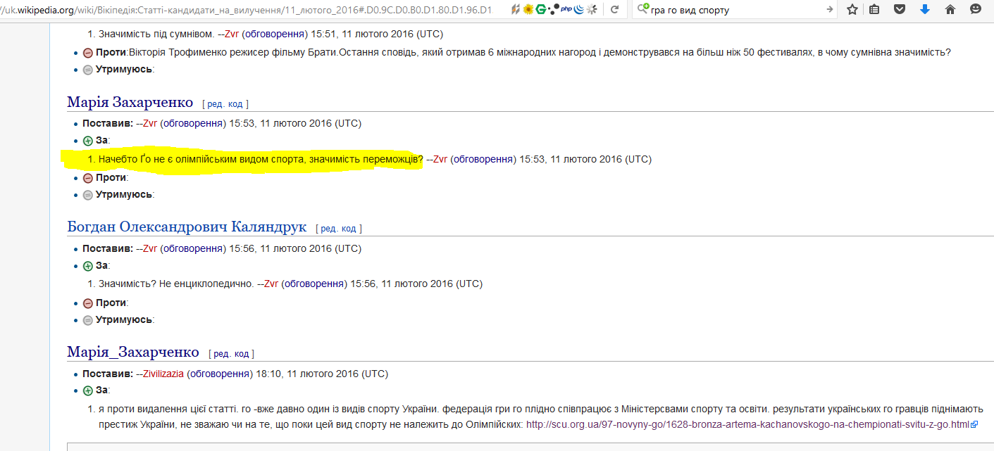 написала про Марію Захарченко у вікіпедії. один із користувачів запропонував її видалити, бо: Начебто Ґо не є олімпійським видом спорта, значимість переможців? --Zvr