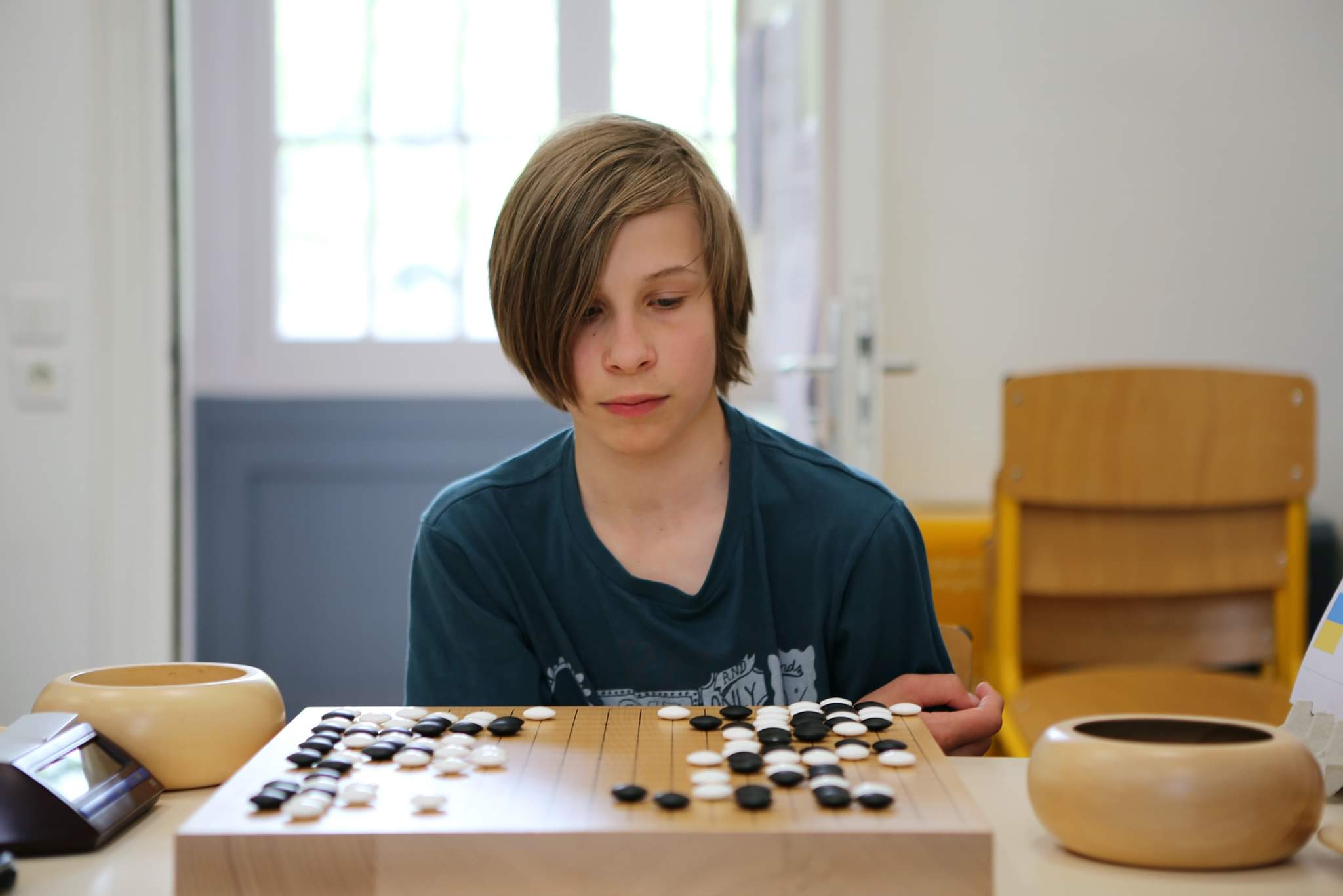 Слова щирого захоплення на адресу Валерія Крушельницького почула ще у перший день змагань від Чемпіонки Франції Мілени Бокле. Наш Чемпіон України і Європи вранці скромно допоміг організовувати місце змагань, а у другому турі отримав перемогу над одним із найсильніших суперників, Кім Дойюп. Трансляції партій доступні впродовж двох тижнів на каналі твіч Єврогофедерації.
