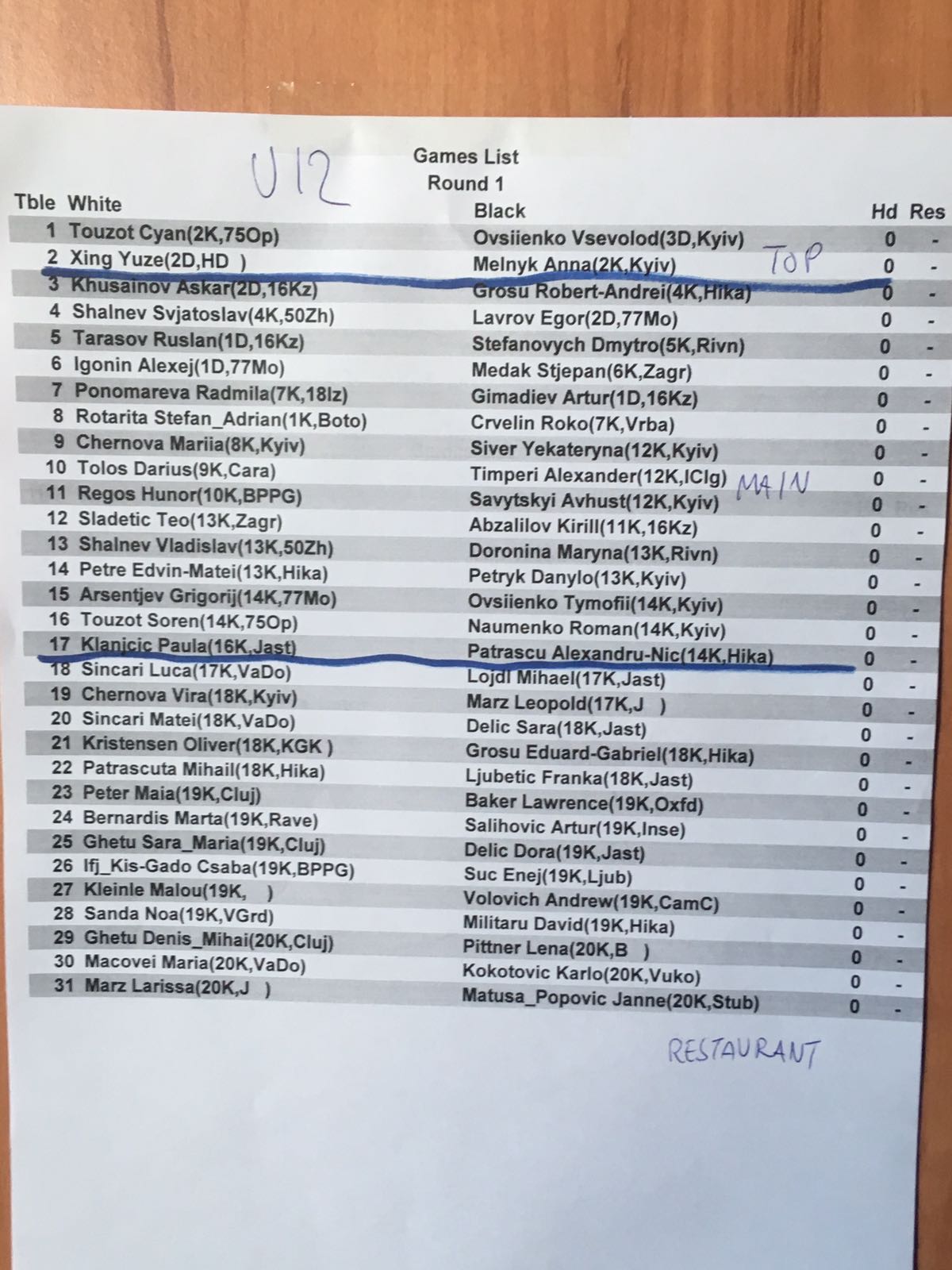 We plan the "PairGo for Kids at EYGC" tournaments during the first two days of EYGC, for the age groups U12 and U16.