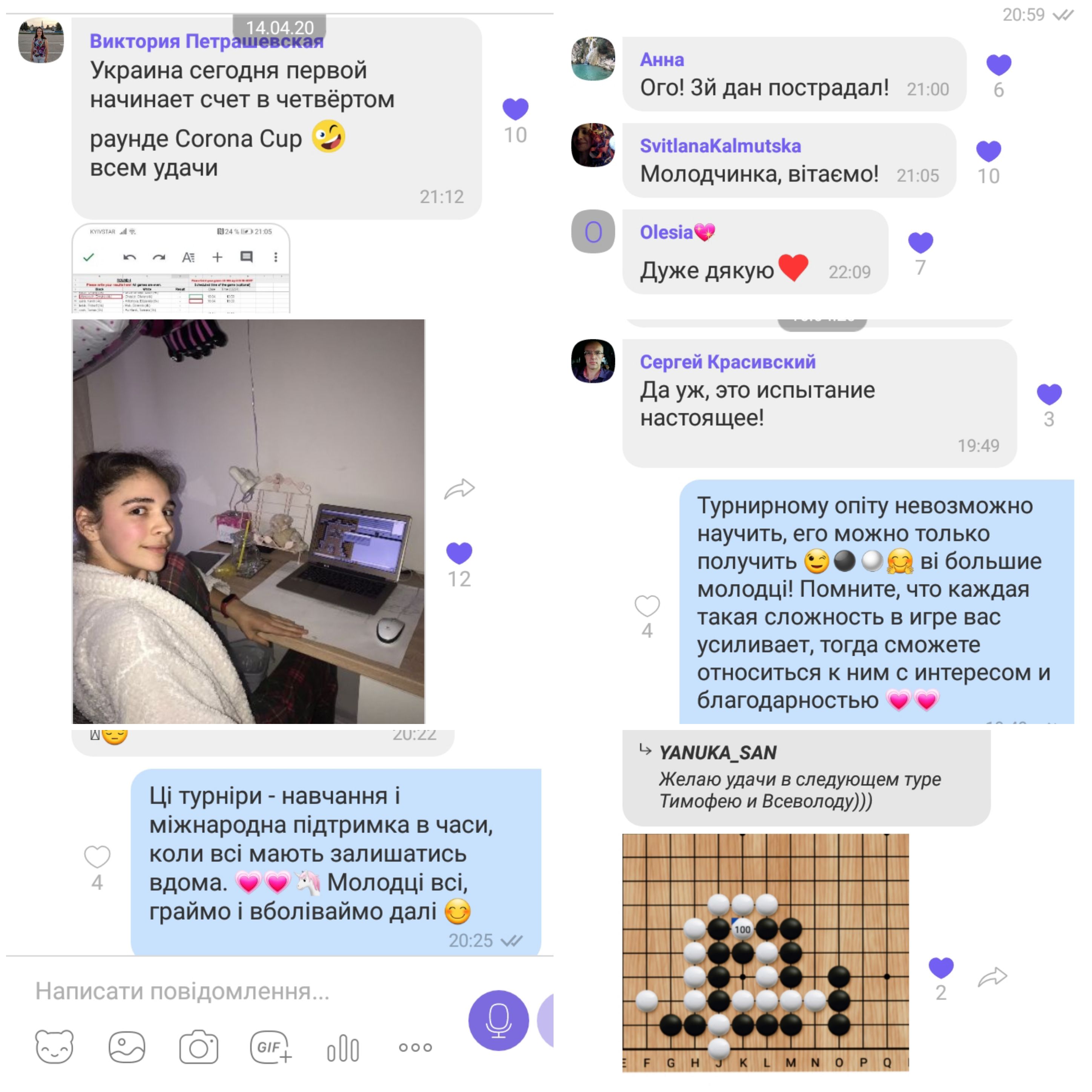 Дивились разом з різних міст партію Артема і вболівали разом у чаті, допомагали одне одному розібратись з KGS та порозумітись з опонентами.