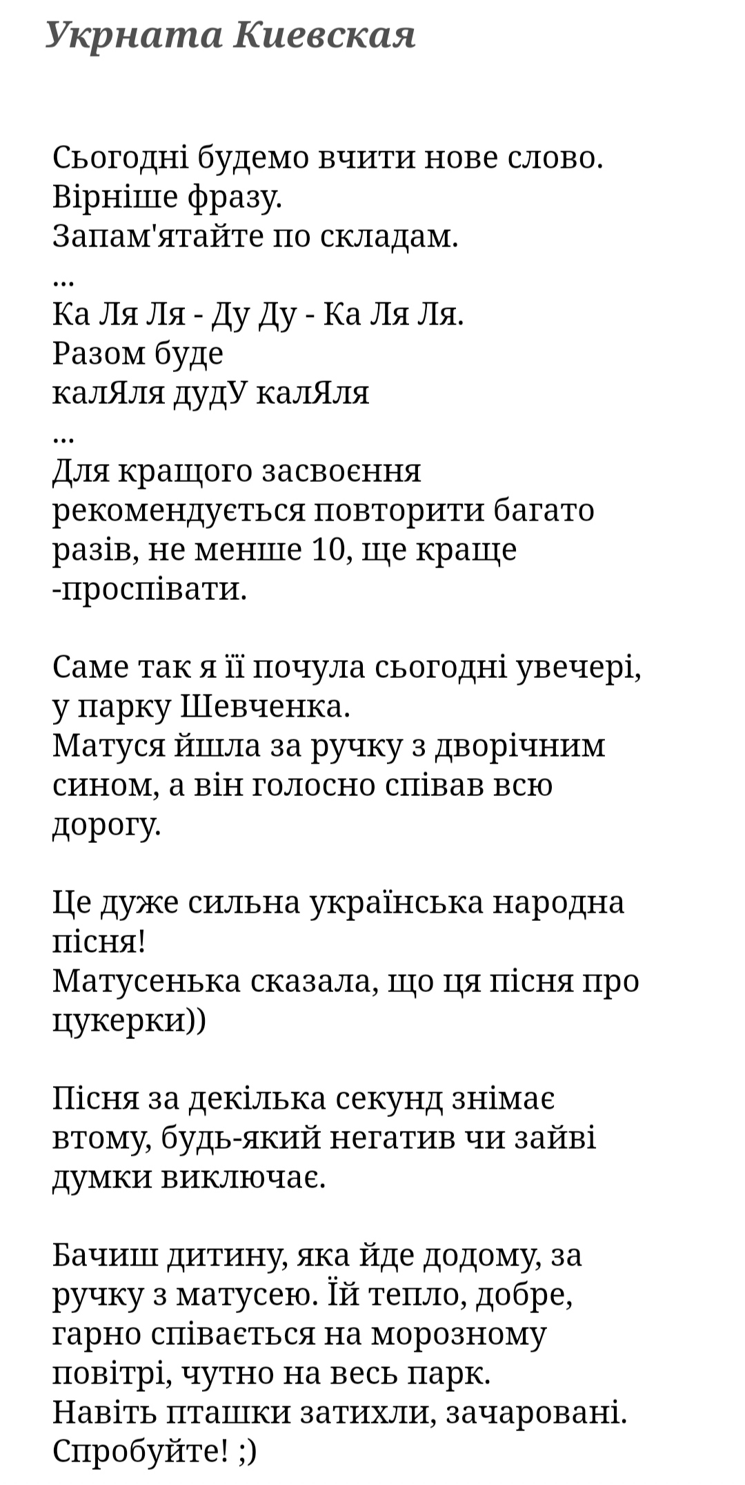 Колись, років з п'ять тому підслухала і записала таку пісеньку, для підтримки настрою. Можливо, комусь стане у нагоді зараз.