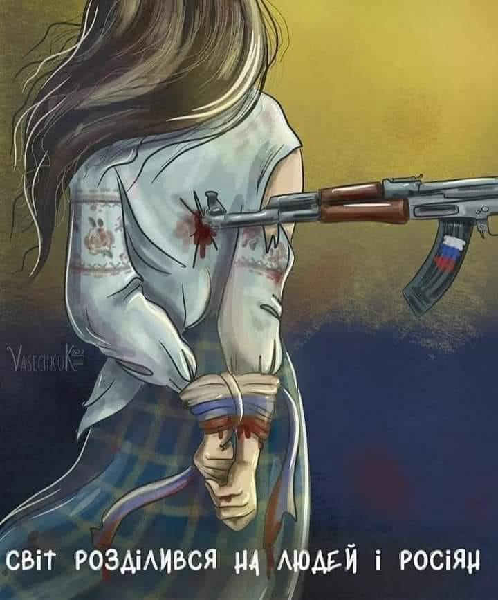 ----Більше нема ніякої вєлікої руської культури, літератури, кіна, живопісі, тєатра і балєта. Є країна виродків, мародерів, ґвалтівників і убивць. Диких людей, яким нема місця в цивілізованому світі!