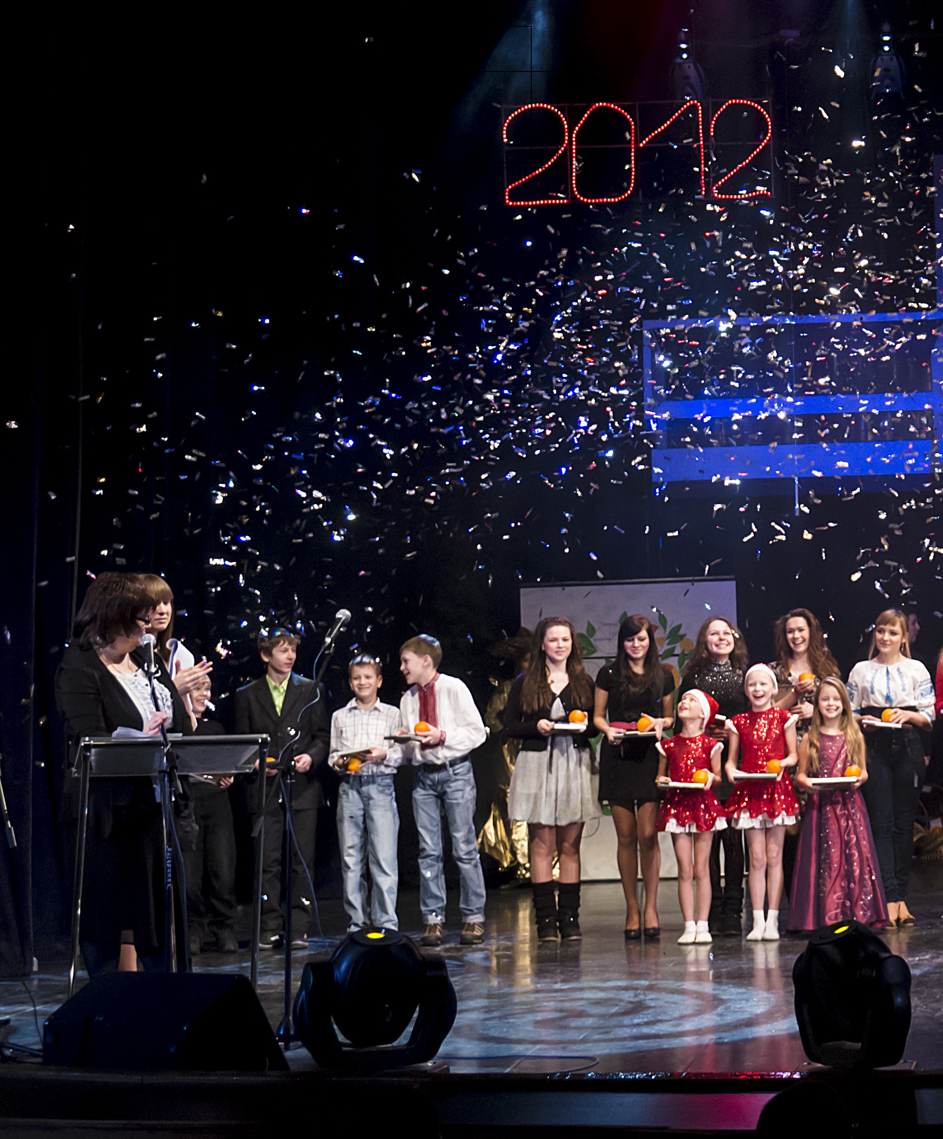 Традиційно церемонія нагородження вилилась у веселе свято, шикарне шоу, яке супроводжувалось і концертними номерами, і золотим дощем в честь нагороджених, і чудовими презентаціями на мультимедійних екранах, які супроводжували все дійство. Відомий гурт нашого Палацу "От вінта" теж виступав на цьому святі. Така традиція в нашому Палаці заведена уже давно і багато років всі діти, їх батьки та педагоги з нетерпінням чекають цього свята. Воно завжди проходить при переповненому залі, так як автори свята відносяться до цього дійства з творчим, нетрадиційним підходом. До виступів на сцені залучаються і найбільш активні батьки. Так що свято дійсно приймає такий теплий дружній сімейний характер. Кожен нагороджений отримує апельсин та спеціальний сертифікат (диплом). Апельсин є символом усього свята. Тому й церемонія називається "Золотий апельсин". Шоу тривало чотири години, які промайнули майже непомітно.
