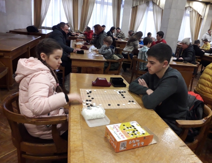 з послідовним чергуванням кольору за іншими столами. Правила підрахунку очок – японські. Комі – 6,5 очок.